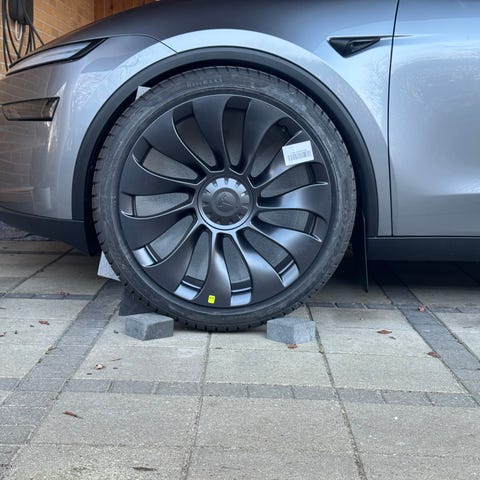 fælgene har lidt "klassisk" tesla skrab på kanterne fra kantstens påkørsel - ikke voldsomt men det er der.