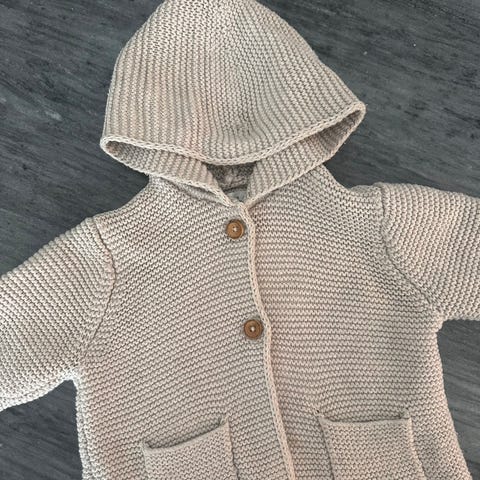 Cardigan, Cardigan, Baby Gap, str. 74, Fin råhvid cardigan i slå-om snit med trykknaplukning. Velour med stjernemønstret bomuldsfor. str. 6-12 mdr.