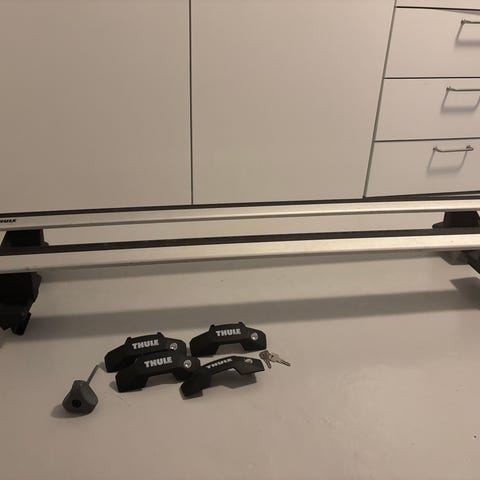 Thule tagbøjler til montering på bilens tag. Fremstillet i robust materiale med justerbare beslag for sikker fastgørelse. Sort farve.