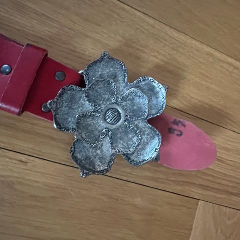 Bæltet har firkantet guldfarvet spænde