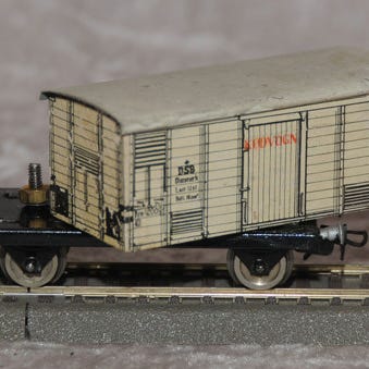 Vognen er brugt men fremstår som ny. Koblinger passer til Märklin bøjlekoblinger. Kan efter ønske leveres med Fleischmann Krog-koblinger eller Fleischmann PROFI-koblinger. Leveres i hjemmelavet æske.