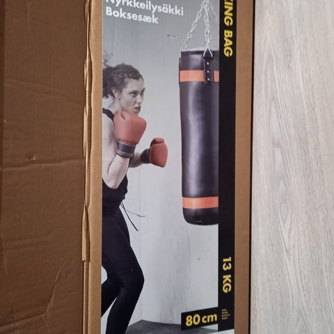 Boksesæk Pro Touch VN 6030 i sort farve med kædeophæng. Egnet til boksetræning og kampsport. God stand. Vejer ca. 14 kg. Hvis ønsket, følger handsker med. Det kan dog ses, at de har været brugt.