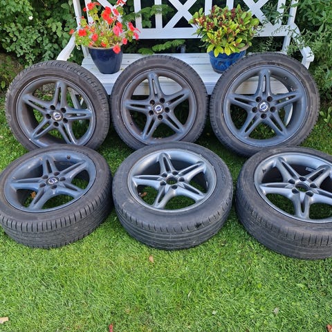 4 næsten nye alufælge - originale fra VOLVO - monitoreret med Continental sommerdæk med min 5 mm mønster. Dæk og fælge kørt ca 5000 km