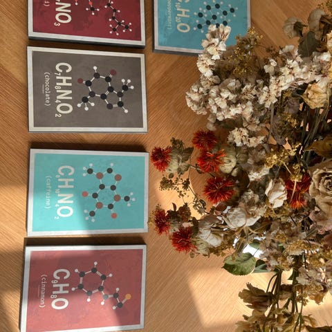 Den kemiske bestanddel af Kærlighed. Fra Molecylen.dk Billede kaldes: Green Marble Gallery. Fremstår som ny med prismærket. Det er købt i Bahne