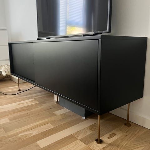 Skuffer, skabe med låge og skjult mindre låge inde i låge, perfekt til fjernbetjeninger, bøger, AV-udstyr, dekoration m.m.