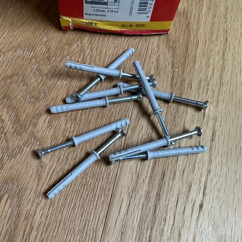 Et parti originale Fischer KD 8 vingeplugs, perfekte til montage i gipsvægge, letbeton osv. De er komplette med skruer/skiver og klar til brug.