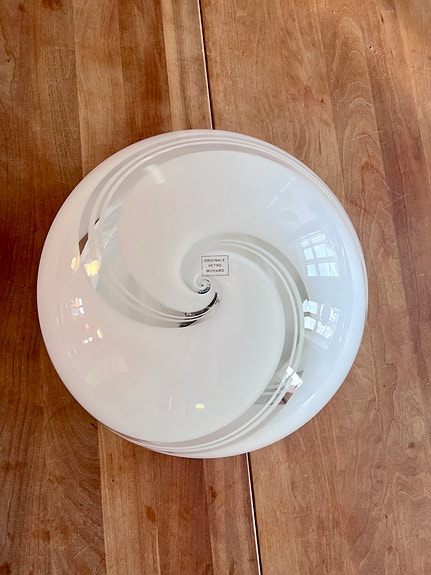 Lampen er enorm smuk i sit swirl. Glasset er mundblæst i en rund form med betagende swirl mønster. Da lampen er håndlavet kan der være små unikke kendetegn ved glasset.