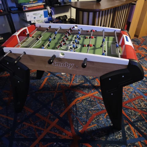 Gør stuen eller legerummet til et lille spilleland med dette fleksible multibord. CB Games 4‑i‑1 samler fire klassikere i ét kompakt sæt: bordfodbold, ping pong, billard og hockey. Det er oplagt til hurtige turneringer derhjemme, til playdates og hyggelige familieaftener. Med plads til 2-4 spillere er det nemt at skiftes mellem spillene og holde gang i konkurrencen.