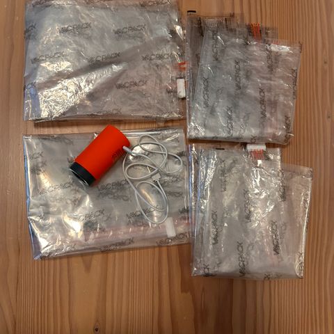 Posen, der er lavet af plast, er meldug- og skimmelsikker, samt vandtæt. Den er let at bruge, du skal blot åbne posen, lægge genstandene ind i den, lukke posen og suge den sammen. Den lette måde at forsegle posen på giver dig mulighed for hurtigt at lukke og åbne posen. Denne komprimerede pose er også nem at rengøre og kan genbruges. Bemærk: Pumpen er ikke inkluderet.