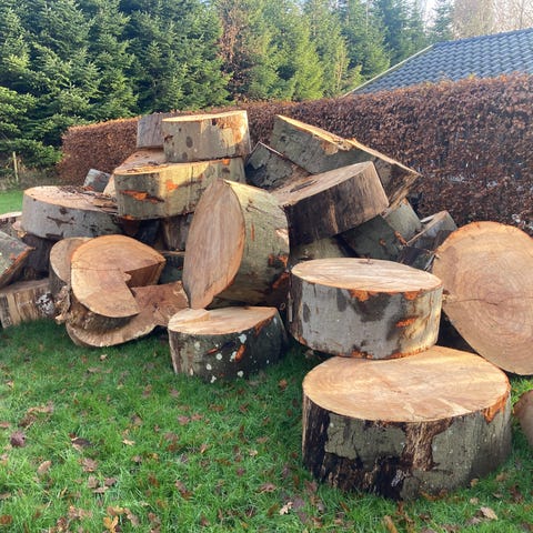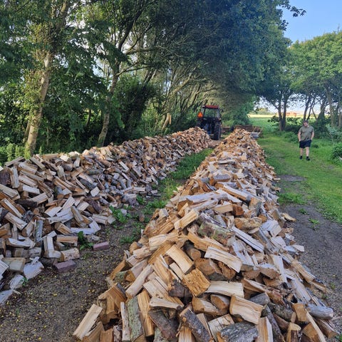 7 rummeter tørret brænde + 2 rummeter optændingsbrænde.