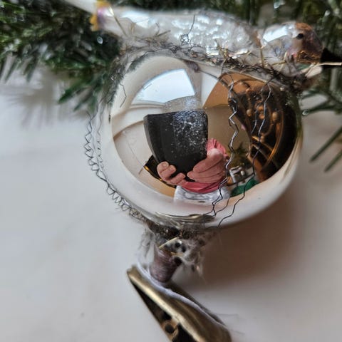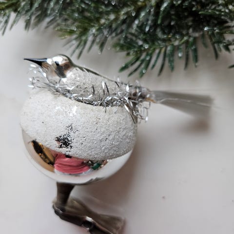 Gammel julepynt glas , fugl i red ,