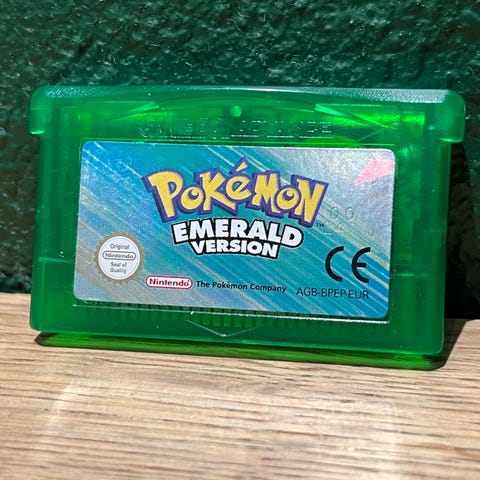 Sælger et Pokemon Emerald Version med den originale boks og den originale Trainers Tuide til også. Spillet virker perfekt, men skal have nyt batteri, for at de tidsbaserede events kan finde sted (dag/nat). Jeg kan gøre det for 150 kroner, eller du kan skifte det selv.