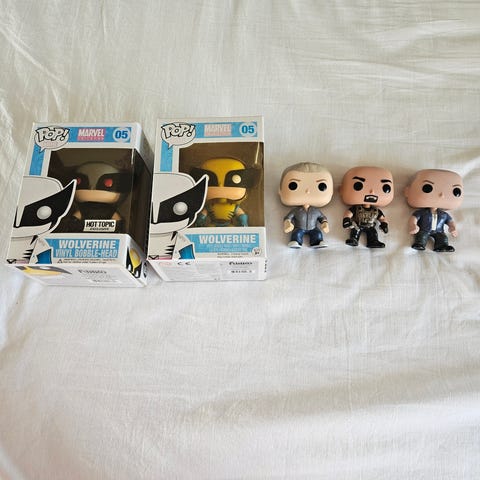 ingen kasser, deadpool's fjeder sidder lidt skævt men kan nok rettes. ellers er de i fin stand. sælges samlet. karaktere: Swamp Thing, Reverse Flash, Bane (animated series), Bane (day of the dead), Deadpool og Two Face fra den gamle film.