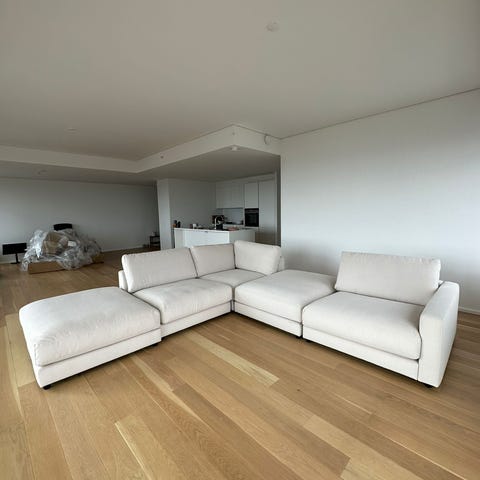 Handvärk 3 Pers sofa med chaiselong i boucle