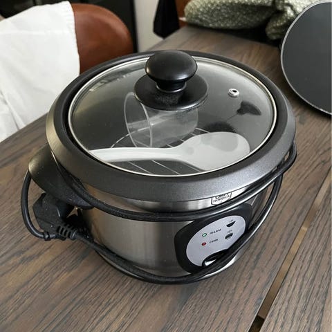 Riskoger med serverings-ske og rist til dampning af grønsager. Manual medfølger. Brugt et par gange.