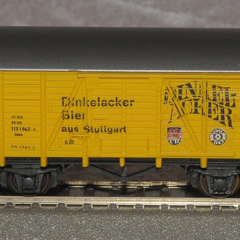 Vognen er brugt men fremstår nærmest som ny. Skydeportene i begge sider kan åbnes. Der er monteret Fleischmann krogkoblinger. Kan efter ønske leveres med Fleischmann PROIFI koblinger eller Märklin bøjlekoblinger. Leveres i original æske. Æsken har brugsspor.