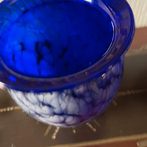 Flot vase i blå nuancer H 26 cm fra røgfrit hjem sælges for 300kr