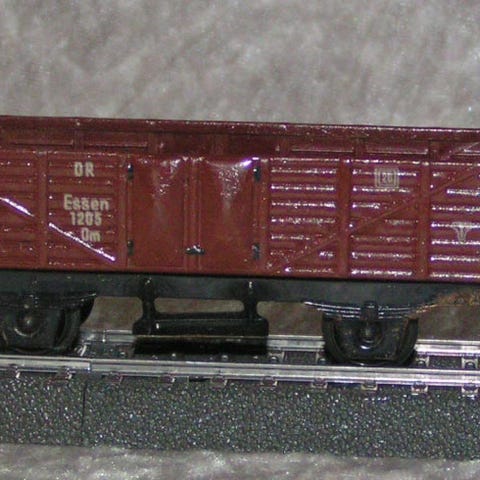 Vognen som er fremstillet helt i blik er fremstillet i efterkrigsårene hvor en del af bliklegetøjsindustrien flyttede til den amerikansk besatte det af Tyskland, og afmærket med "Made in U.S. Zone, Germany". .Har brugsspor primært i form af snavs i bunden af ladet samt bukkede trinbræt. SAMLEOBJEKT.