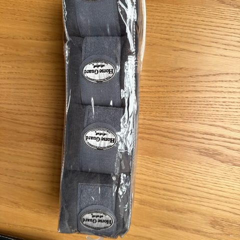 Horse Guard hovbeskyttere i hvid farve. Designet til at beskytte hove under ridning eller transport. Fremstillet af holdbart materiale med velcro-lukning for nem justering og fastgørelse.