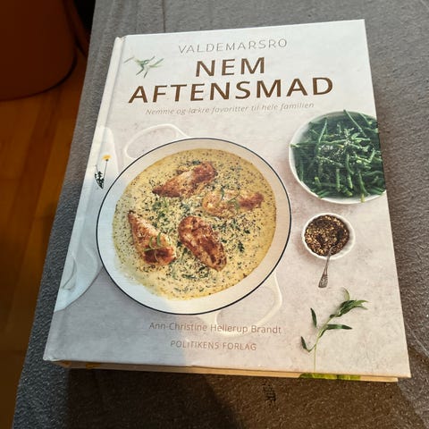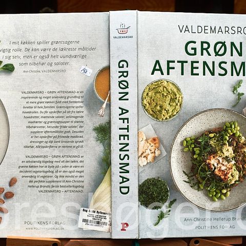 Valdemarsro Grøn Aftensmad kogebog med opskrifter på grønne aftensmåltider. Indeholder information om ingredienser og tilberedning af vegetariske retter. Udgivet af Politikens Forlag.