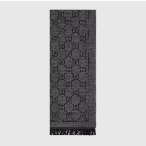 Original Gucci GG jacquard knit scarf with tassels.