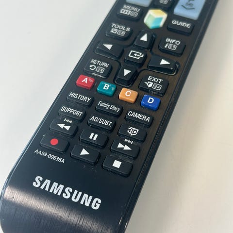 Samsung AA59-00741A fjernbetjening med standard knaplayout og funktioner til styring af kompatible Samsung-enheder.
