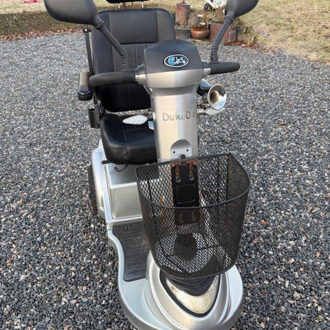 DukaDu el-scooter fra 2023 kun kørt 1.100 km. Nypris 35.000 (kvittering haves), med kurv bag og vindskærm for. Har været min fars, men han gik bort i august og nu vil min mor ikke se på den længere.