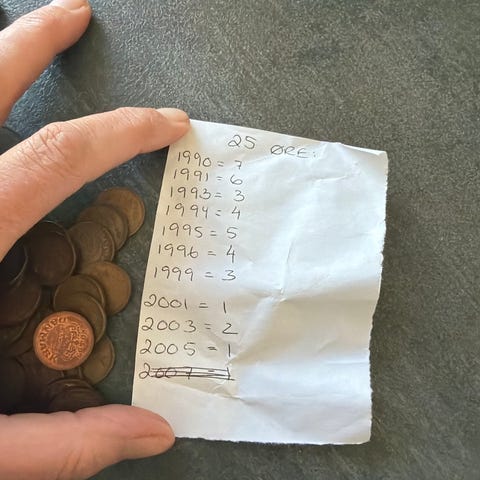 - 25 øre + 1 kr