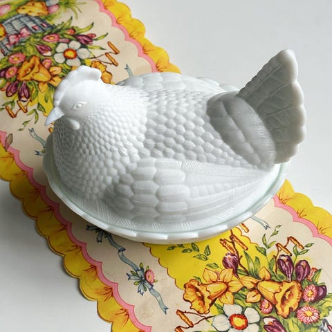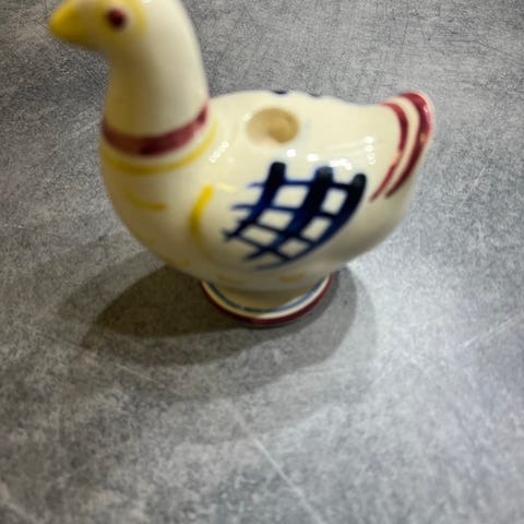 Skøn, mindre opalinehøne. Brug den til æg eller hønsesalat.Underskålen måler 13 x 10 cm.