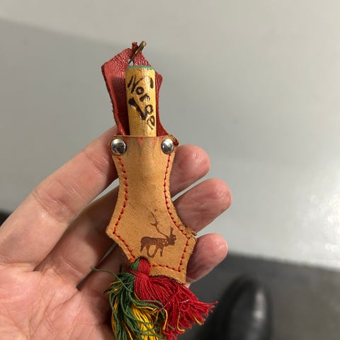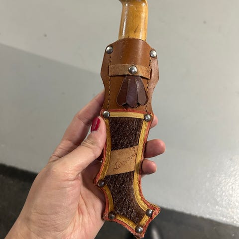 Sælger denne charmerende lille vintage Mora-kniv fra Sverige. Kniven bærer det klassiske MORA (A)-stempel og har et smukt lyst træhåndtag. Den følger med en håndlavet læderskede med dekorative detaljer og pelsindsats på forsiden – et virkelig fint lille samlerstykke.