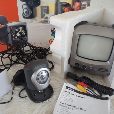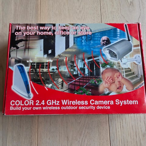 Deltaco RC-210 trådløs kamera modtager med fjernbetjening og tilhørende kamera. Systemet indeholder en modtagerenhed og et kamera med nattsynsfunktion. Velegnet til overvågning og sikkerhedsapplikationer.