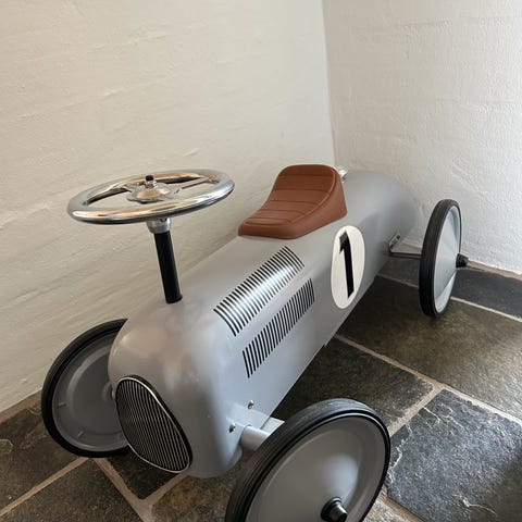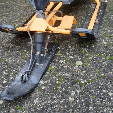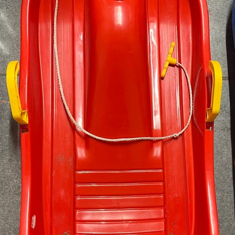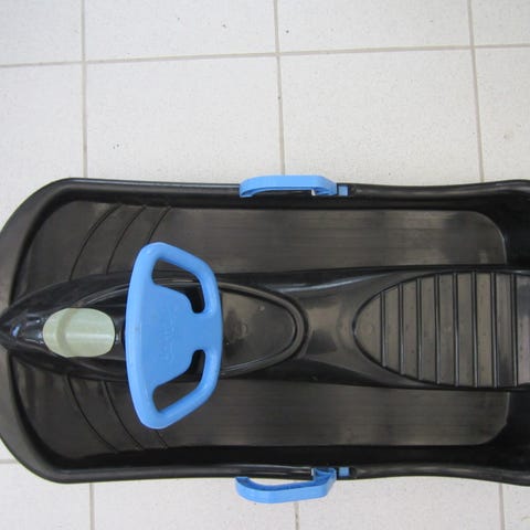 Jernslæde med plastik rat, meder og sæde
