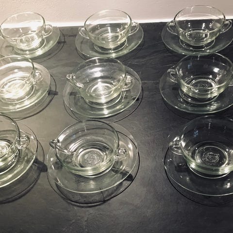 Sæt bestående af 3 glas skåle i forskellige størrelser. Skålene er klare og har en simpel, rund form. Sælges kun samlet for 60kr.