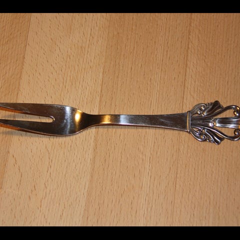 Sølvtøj, Hirsholm, Tre tårnet sølv, Stegegaffel m/stål, længde 22 cm