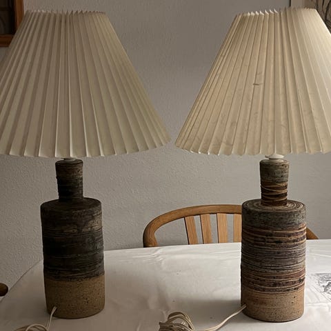 Stor og flot bordlampe af Tue Poulsen. Model 9092. Hånddrejet bordlampe i delvist glaseret stentøj.