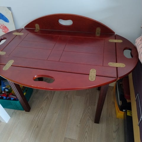 Toppen af bordet kan løftes af, og bruges som serveringsbakke.
