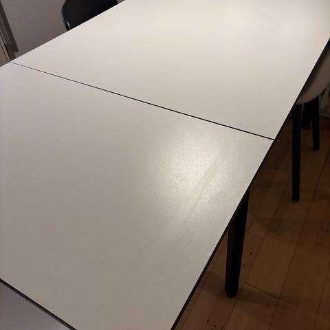 Spisebordet er solidt men brugt. Ridserne er overfladiske (se billeder). Udtræksplade medfølger.