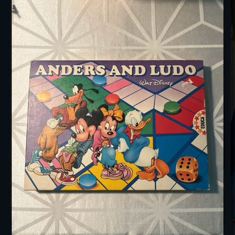 Anders and ludo, Familiespil, brætspil, Komplet med originale brikker. Låget er slidt