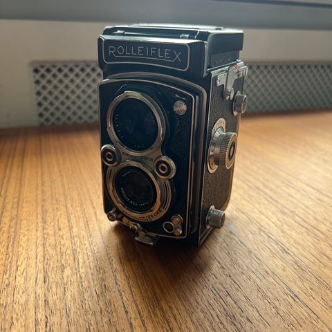 God stand, et velfungerende toøjet SLR til både 6x6 og 24/36 med indsats a la Rolleikin. Ny matskive med snitbillede og mikroraster, lysstærk som Hasselblads (400kr.).Udmærket vivvinkelforsats medfølger med søgeren mangler, så man skal bruge optageoptikken til begge funktioner.