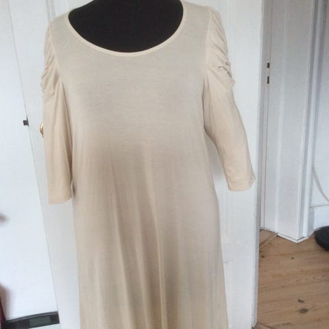 Kjole beige, sort og grøn med lange ærmer str. M