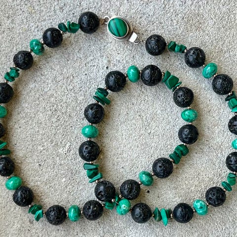 Smuk grøn halskæde af malakit