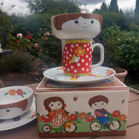 Fint gammelt tallerken / kop børne sæt fra 1998 med pip / tweety