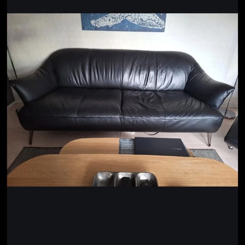 Sofaen er med Pasadena Black læder den er brugt men i god stand. Sofaen har lidt i den ene ende hvor vi har siddet mest, der er læderet mere løst, men ingen skader og læderet er plejet igennem årene.