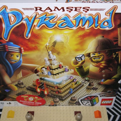 Sjovt spil for hele familien med pyramidebyggeri, terning og spilleplade. Spillet indeholder forskellige LEGO-klodser og figurer til at bygge en pyramide.