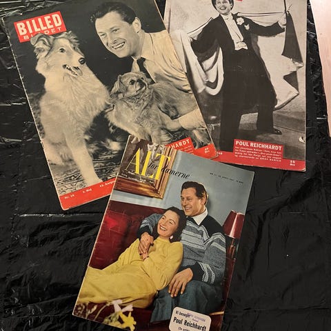 Til salg er en række ugeblade, hvori der er store og små artikler om Poul Reichardt. Han var i en årrække en populær person hos ugebladenes redaktører, der bragte mange billeder, omtaler og artikler om ham.