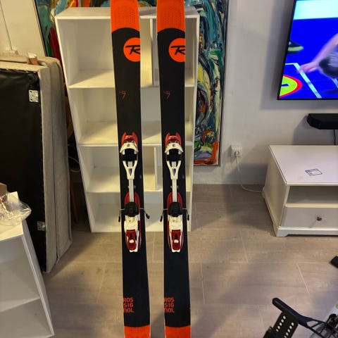 Rossignol Super 7 RD med Look Pivot 14 binding, Som passer ca. til støvle str. 27-28 måske 29. Ellers kan man flytte den så den passer.