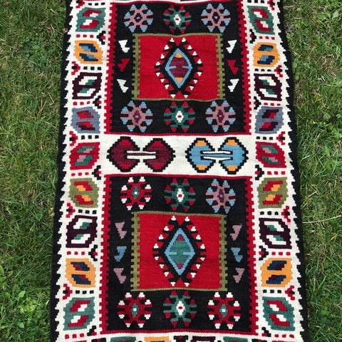 Løse tæpper, ægte tæppe, Kelim, b: 34 l: 75, Lille kelim tæppe / løber. 75 x 34 cm.