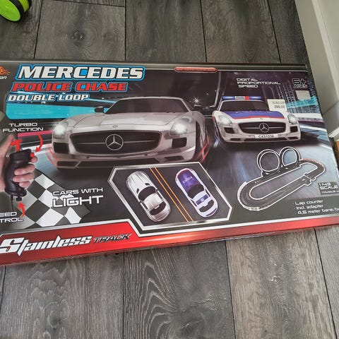 Sjov og underholdende racerbane med 1 bil (vi brugte også andre biler som passede i størrelsen).