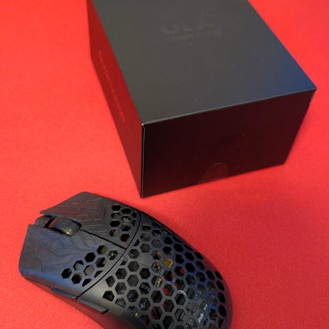 med perforeret design for lav vægt Farve: Rød. Produktet er en computer mus til gaming formål.