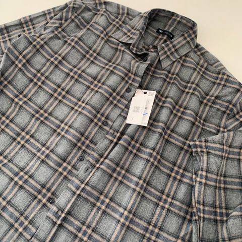 Zara skjorte str. 44, lyseblå, lange ærmer. Materiale hør. Ny, med prismærke. Meget pæn og farven er fin lyseblå. Mål: Skulder B 52 cm / L 80 cm.